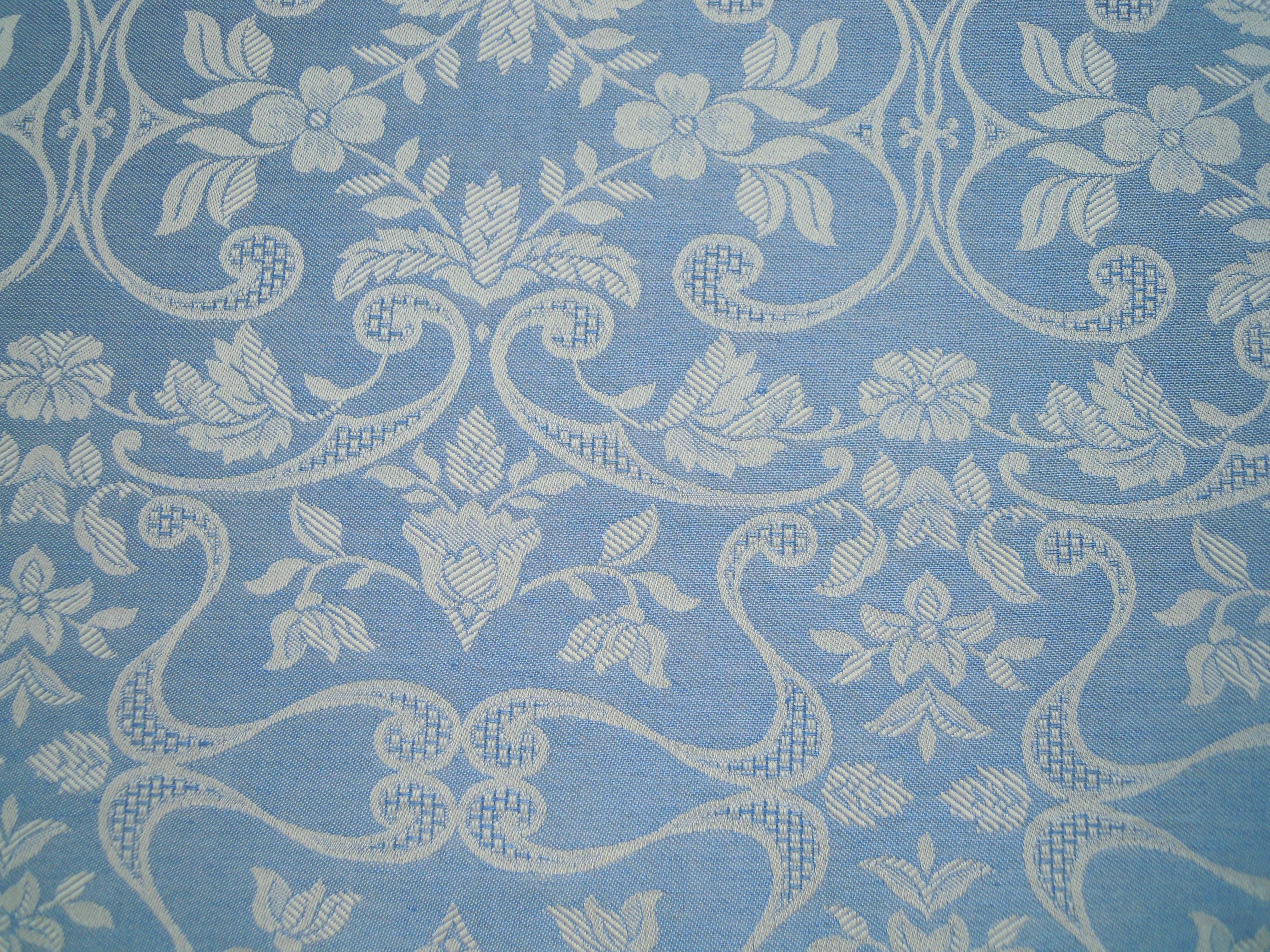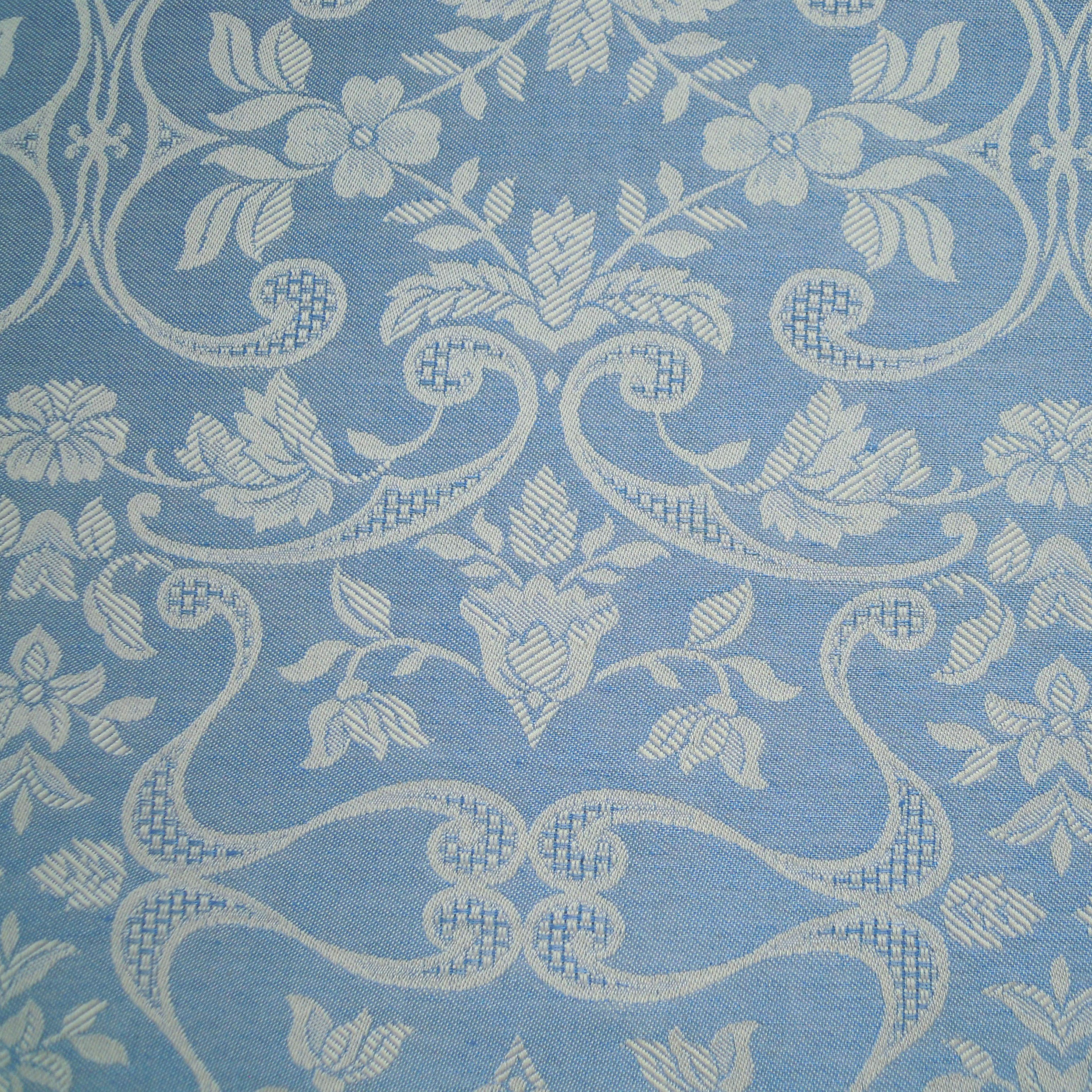 Asciugamani  tessitura in puro lino artigianale con disegno giglio finitura macramé, colore azzurro