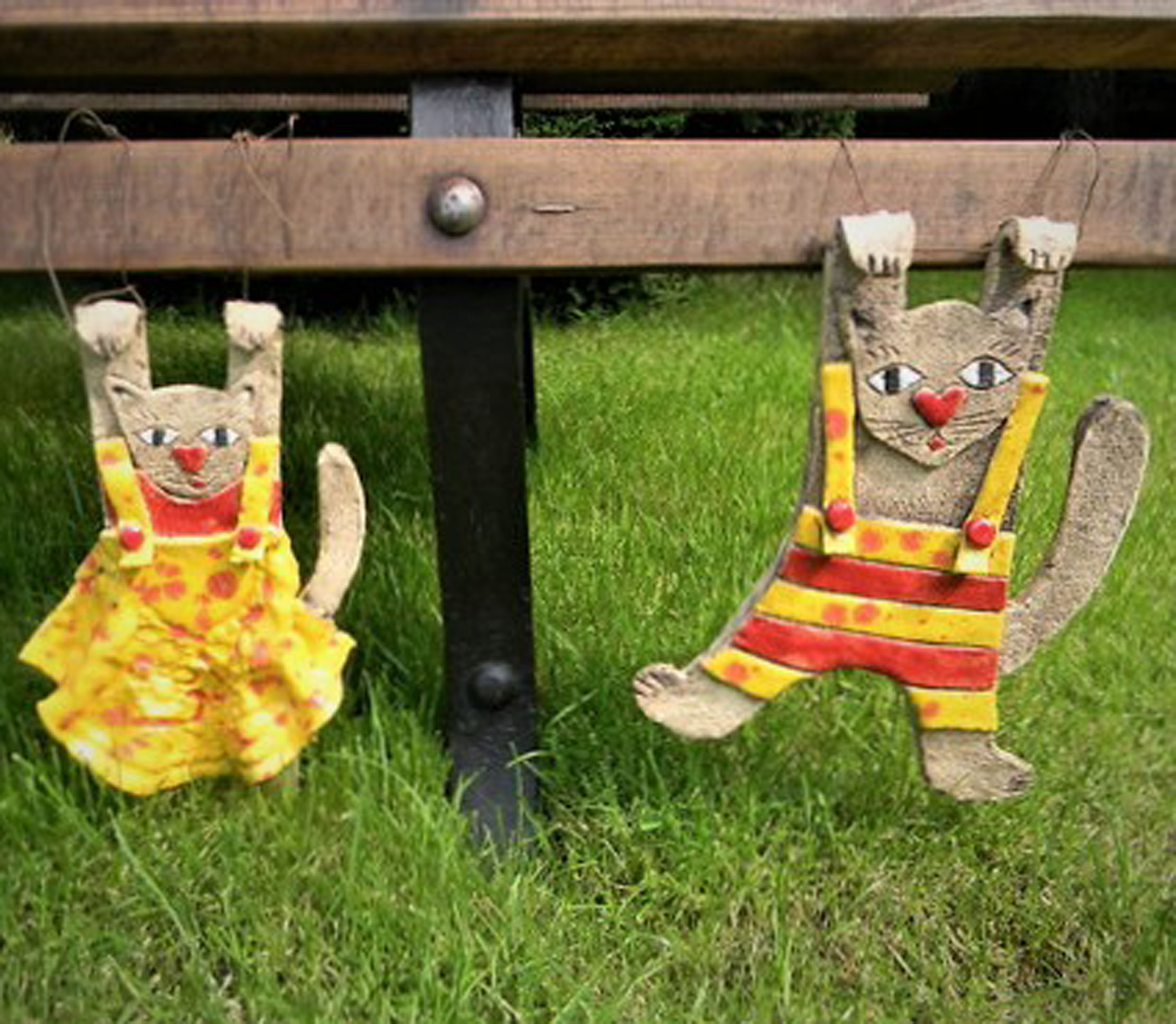 Flying orange cats, handmade ceramic piece. Unique piece.