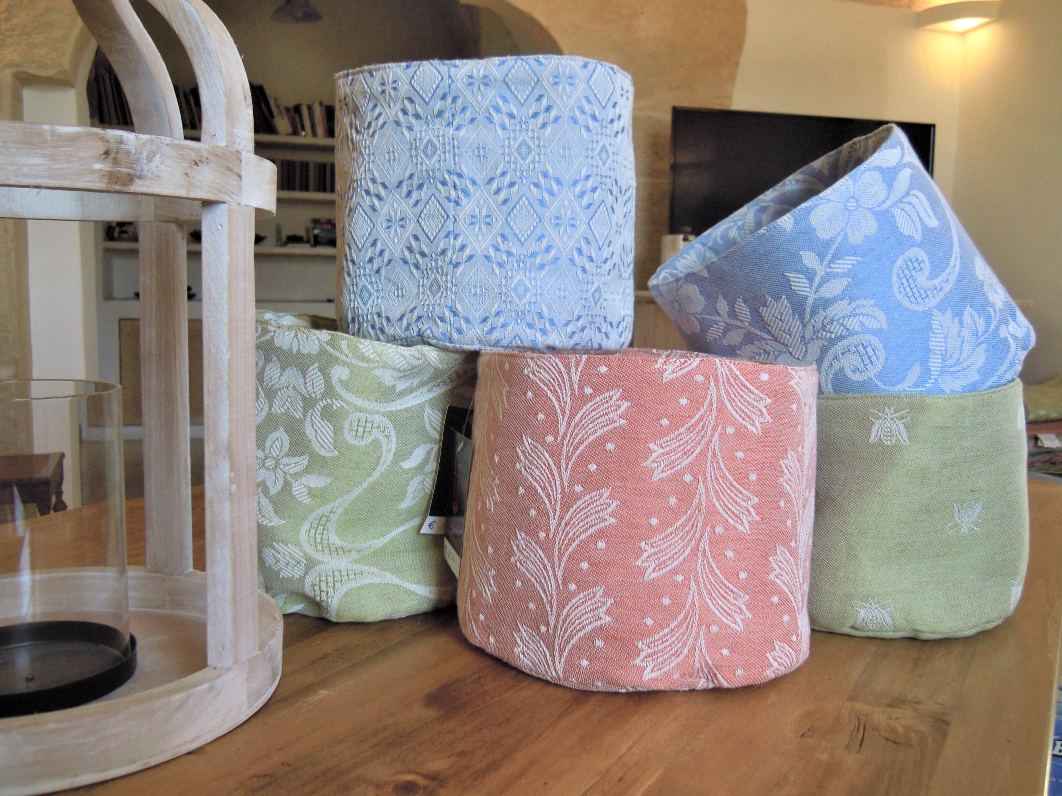Basket shelf, handcrafted with various colors and designs in linen and cotton, cm 22x20