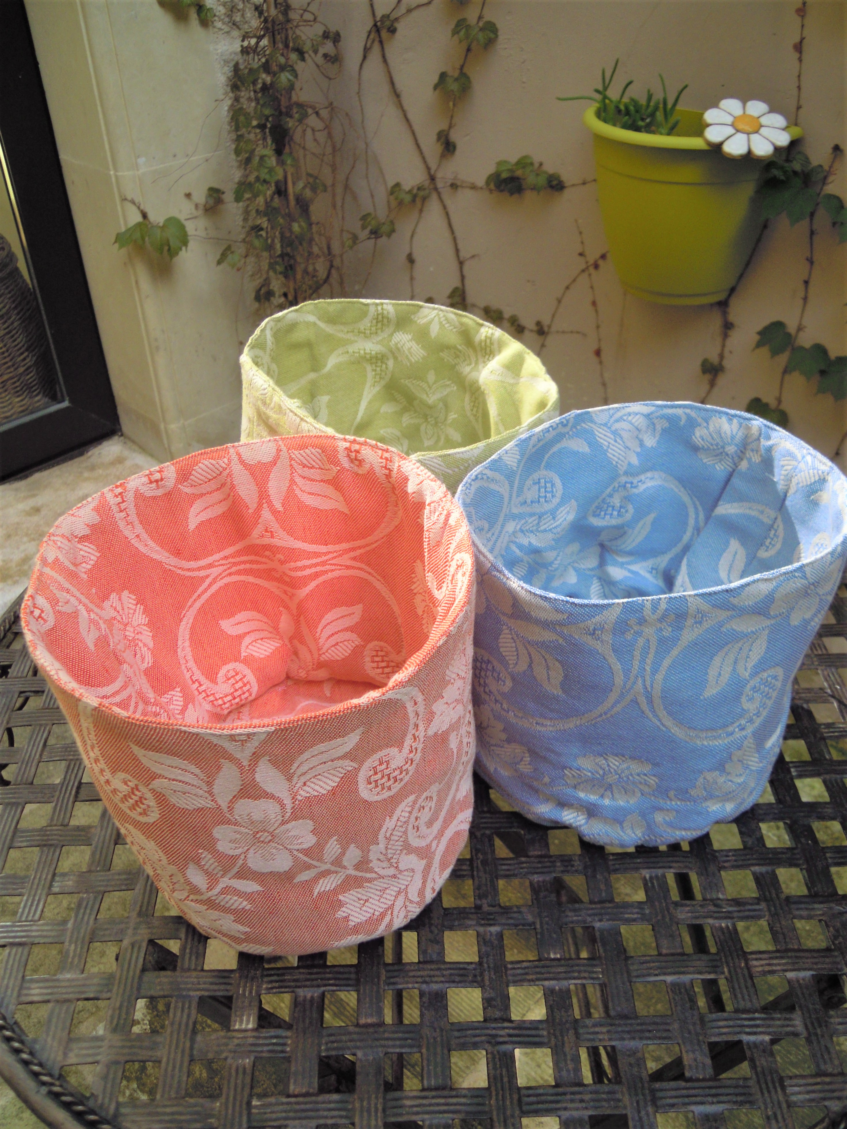 Toilet basket, handcrafted with various colors and designs in linen and cotton, cm 22x20