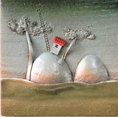 Tableau, handmade ceramic piece. Little size. White frame