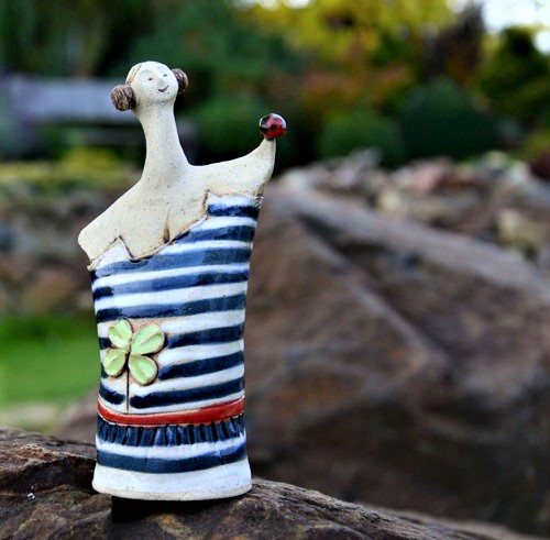 Lady e coccinella, pezzo unico in ceramica.