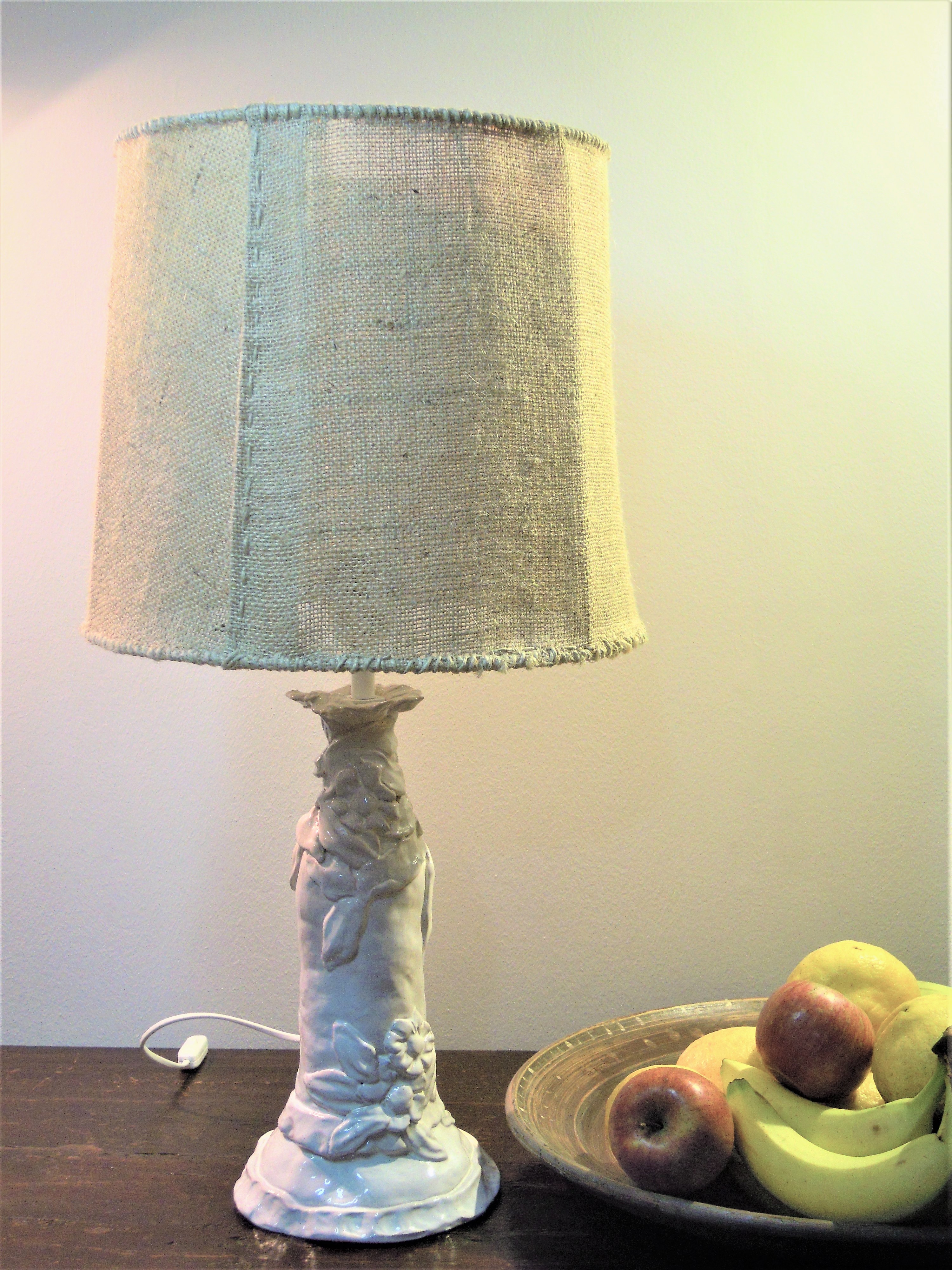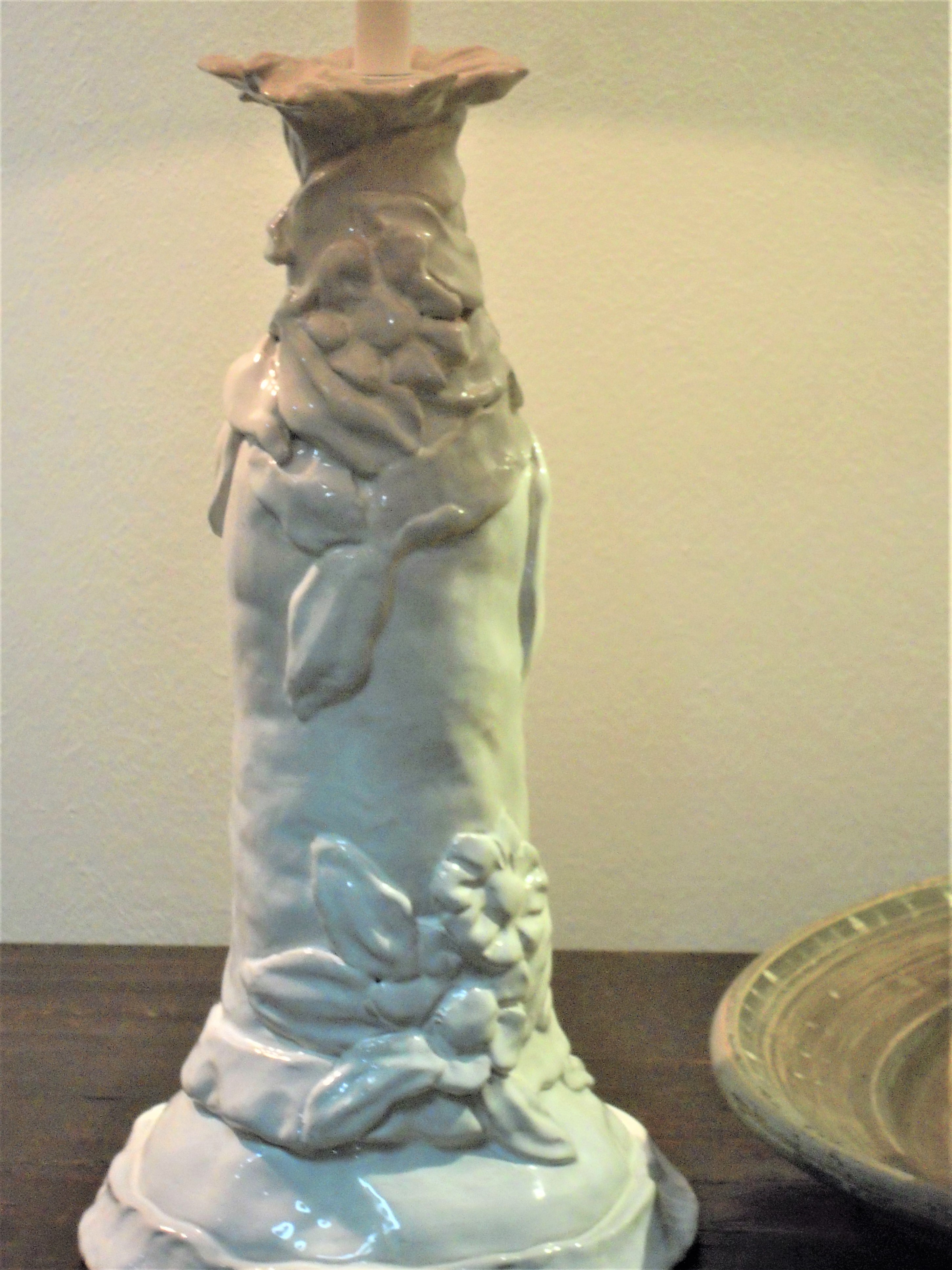 Lampada da tavolo floreale bianca. Pezzo unico artigianale in ceramica. Altezza cm 45