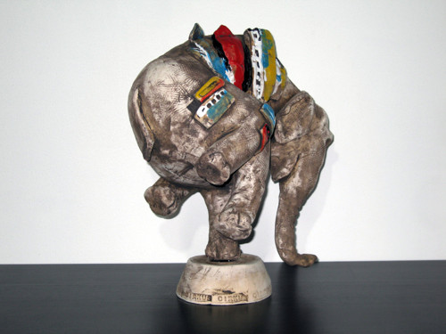Elefante da circo. Pezzo unico artigianale in ceramica. Altezza cm 40