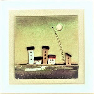 Quadro grande, pezzo unico artigianale in ceramica. Altezza 36 cm. Cornice bianca