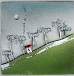 Quadro grande, pezzo unico artigianale in ceramica. Altezza 36 cm. Cornice bianca