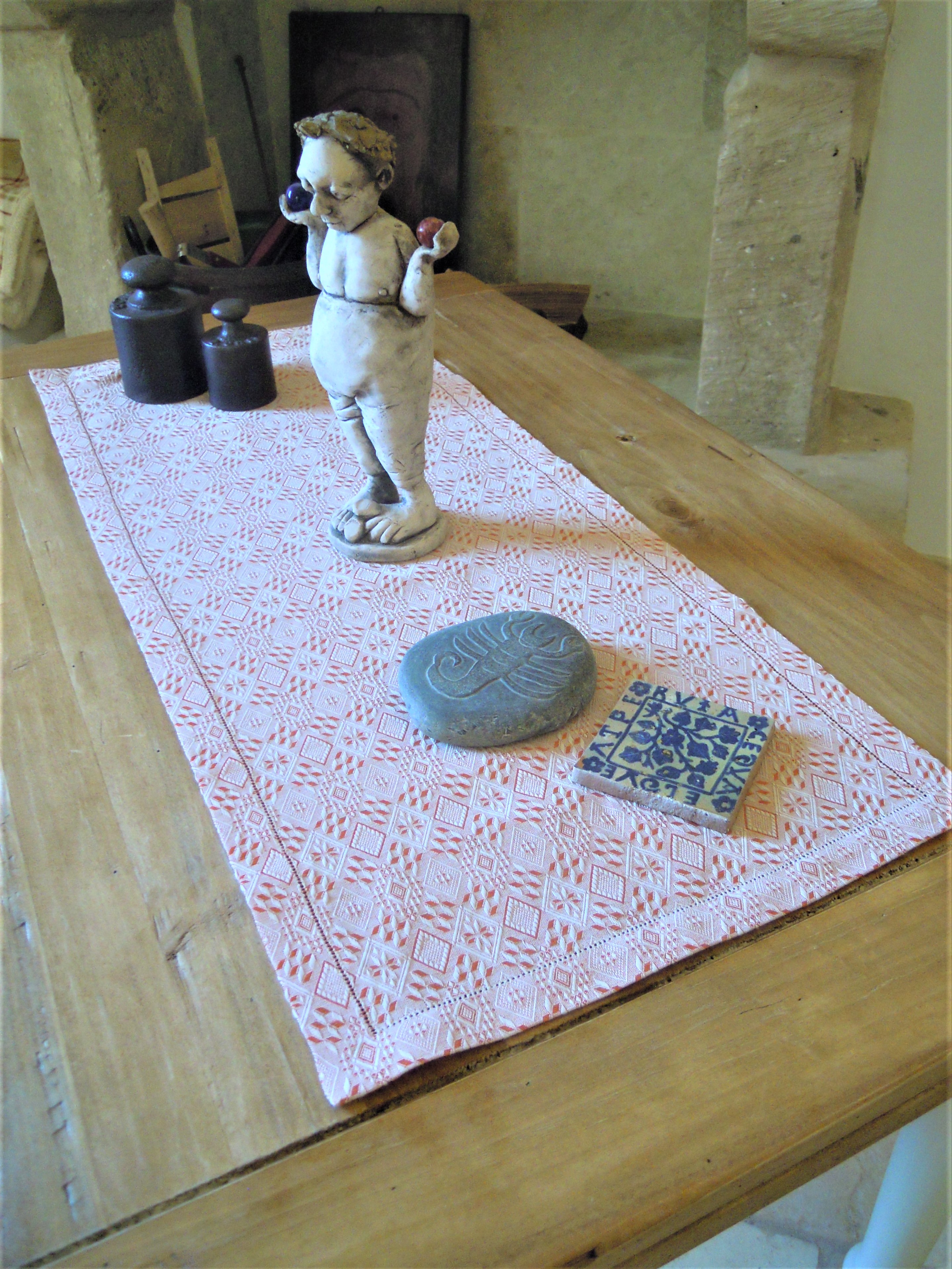 Runner da tavola, tessuto artigianalmente disegno Biscotto salentino cm 300x45, colore zenzero