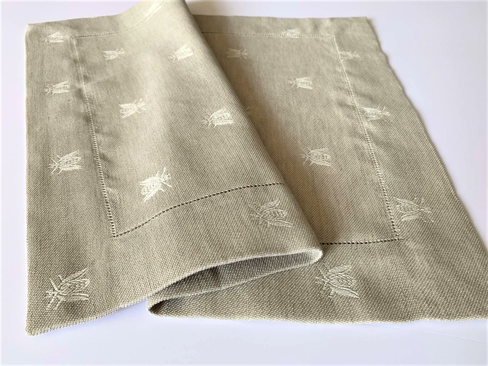 Tovaglietta per colazione, tessitura artigianale, disegno con api, colore tortora