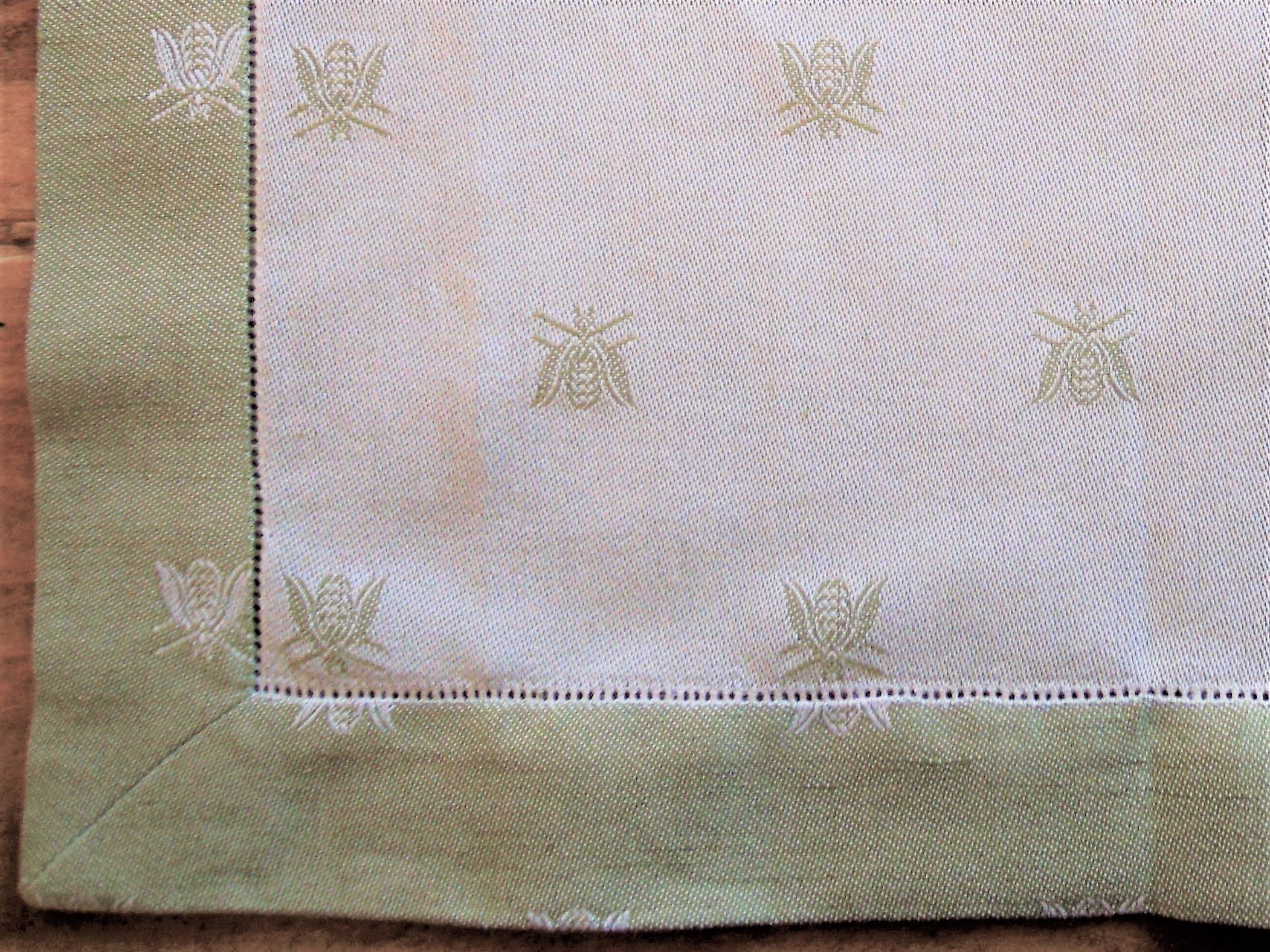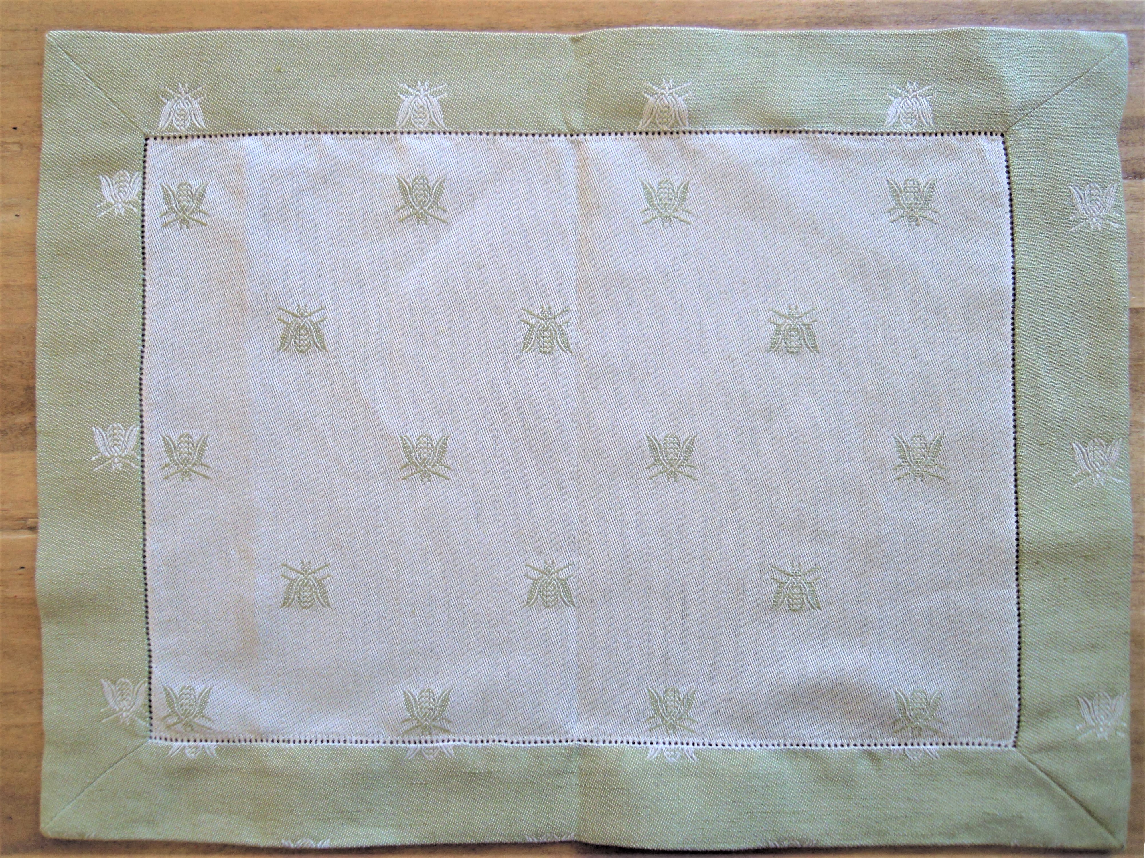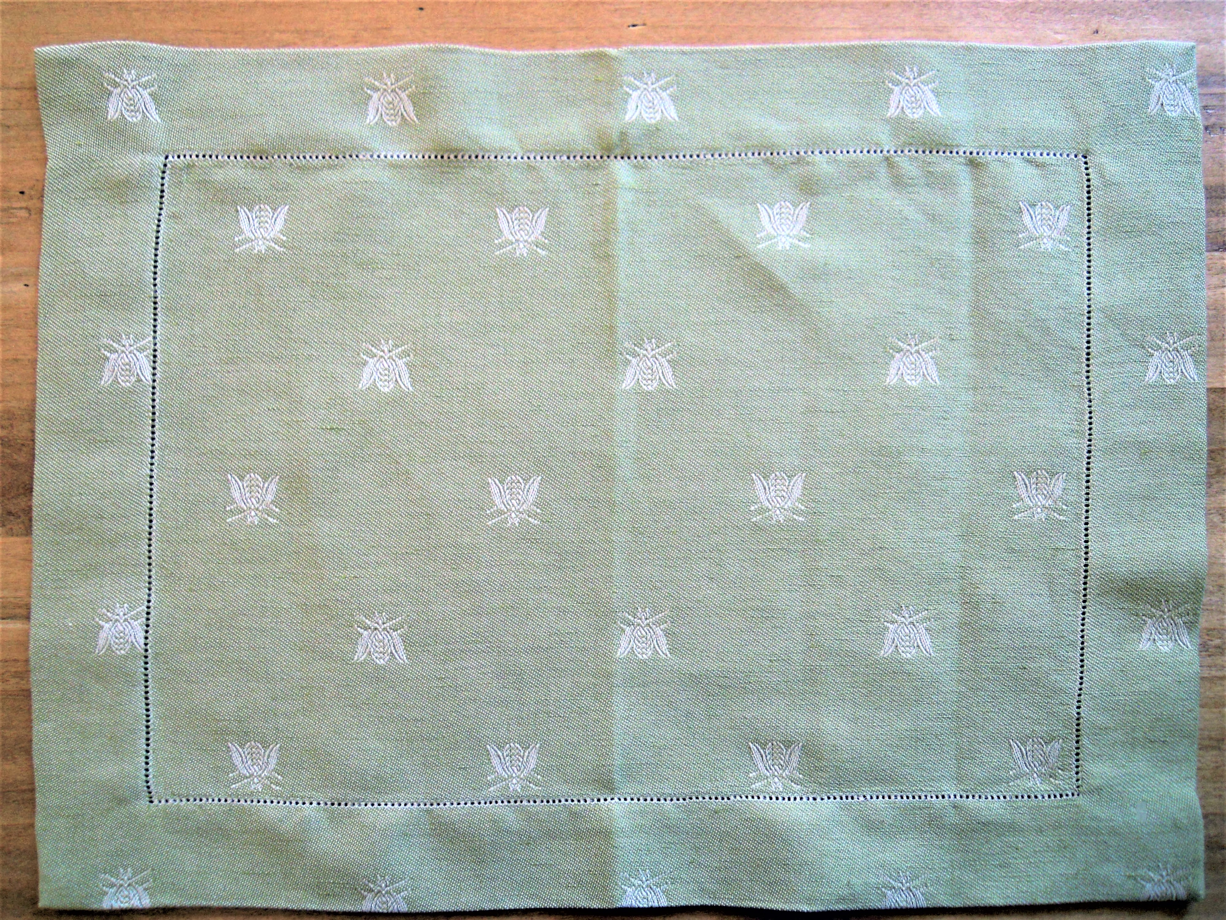 Tovaglietta per colazione, tessitura artigianale, disegno con api, colore verde muschio