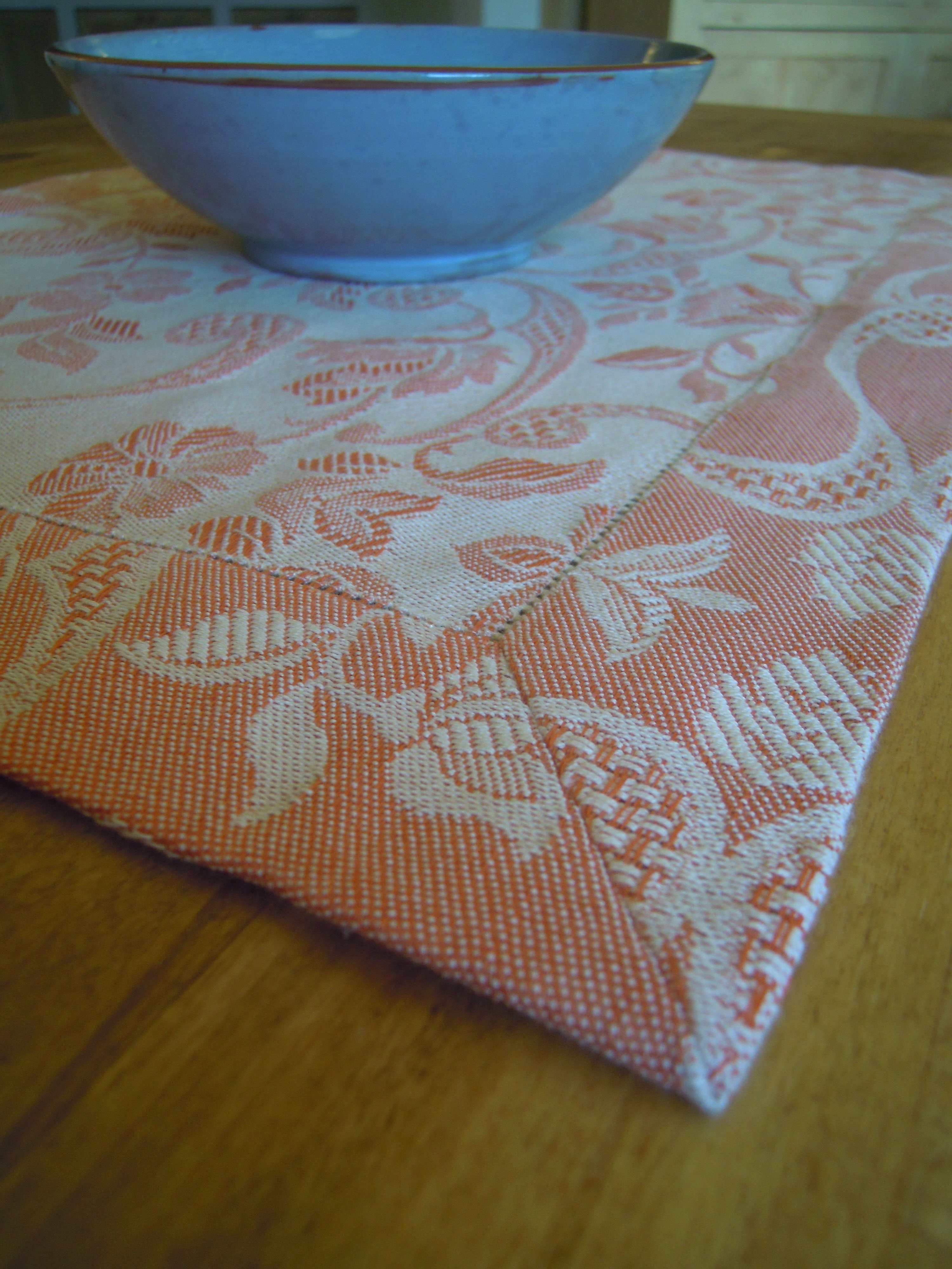 Tovaglietta per colazione, tessitura artigianale, disegno floreale, colore rosso
